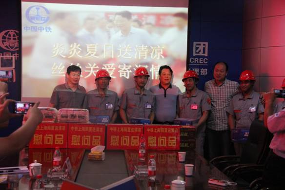 當(dāng)天上午,王主席一行將防暑降溫飲料、食品逐一發(fā)放到職工手中,并代表集團(tuán)公司工會對奮戰(zhàn)在建設(shè)一線的職民工們表示了由衷的感謝,提醒職工們要時(shí)刻注意安全,關(guān)切詢問他們的工作、生活情況,并希望大家健康生活,舒心工作,為上海局的發(fā)展多做貢獻(xiàn)。