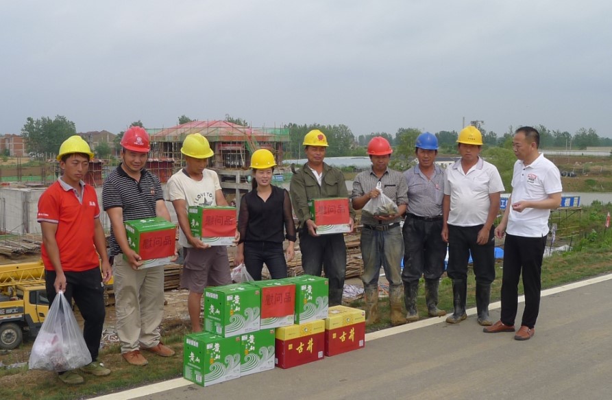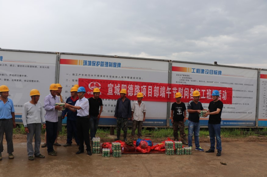 又訊,6月6日上午,宣城陽德路項目部開展“情系農(nóng)民工、端午節(jié)慰問活動”,項目部領(lǐng)導(dǎo)來到施工現(xiàn)場為奮戰(zhàn)在一線的100多名農(nóng)民工送去了粽子、豬肉、啤酒等慰問品,送去了項目的溫馨祝福,讓堅守在施工一線農(nóng)民工兄弟真正感受到項目對他們的關(guān)愛之情和濃厚的節(jié)日氣氛。(唐順林)