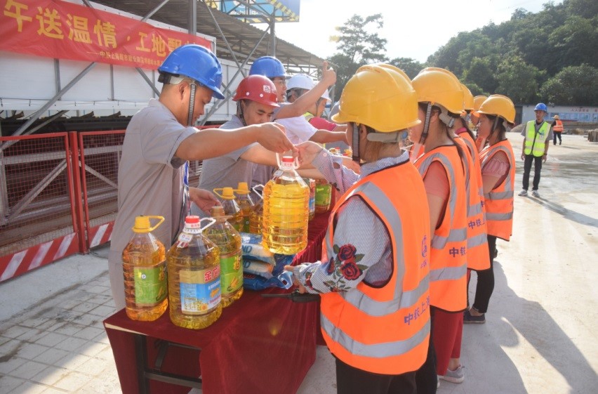 ☆6月6日,成都軌道交通8號線6標(biāo)項目部工會向奮戰(zhàn)在高溫下的一線員工和協(xié)作隊伍送去了濃濃的節(jié)日祝福。(王紅社)
