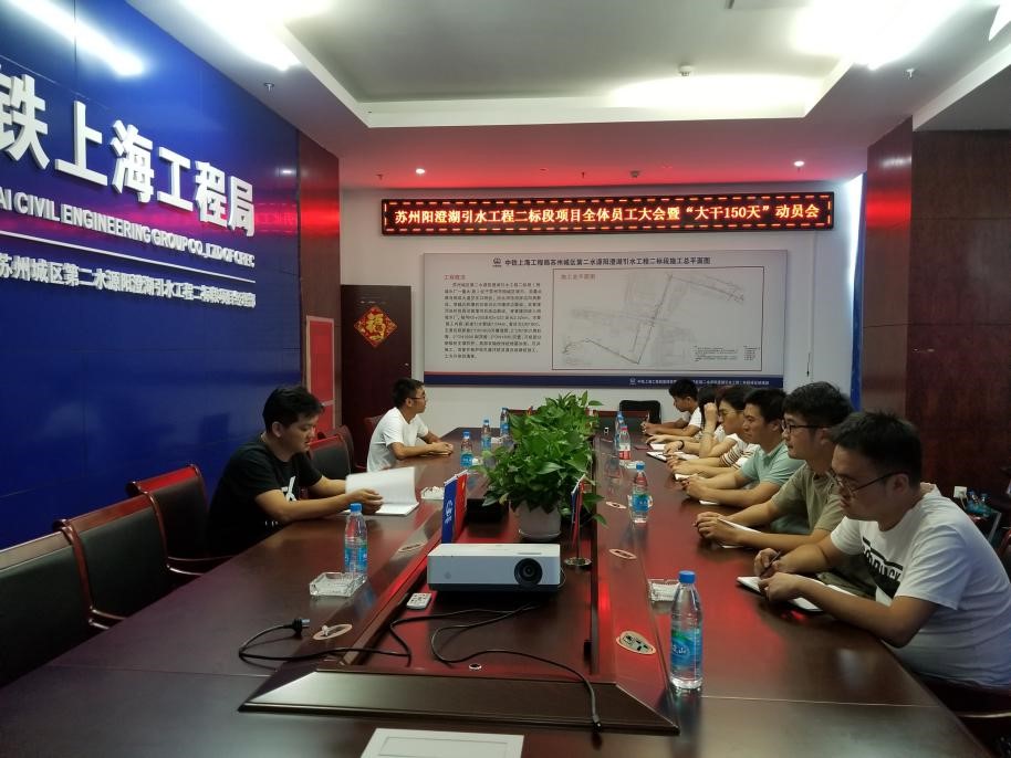 蘇州陽澄湖引水工程二標(biāo)段項目部:組織項目部全體員工宣貫公司會議精神,并召開“大干150天”活動動員會,結(jié)合項目實際情況對后5個月的工作進(jìn)行了安排部署:一是根據(jù)公司“大干150天”活動施工生產(chǎn)計劃,詳細(xì)制定頂管、沉管施工工期節(jié)點(diǎn),明確大干期間工作任務(wù)。二是深入施工現(xiàn)場查缺補(bǔ)漏,確保人、機(jī)、料在大干期間滿足施工生產(chǎn)需求,保證工程進(jìn)度、質(zhì)量、安全全部達(dá)標(biāo)。三是項目全體員工要有緊迫感,打起百分之百的精神,干好本職工作,借大干150天熱潮,完成公司下達(dá)的產(chǎn)值指標(biāo)。(秦旖旎)