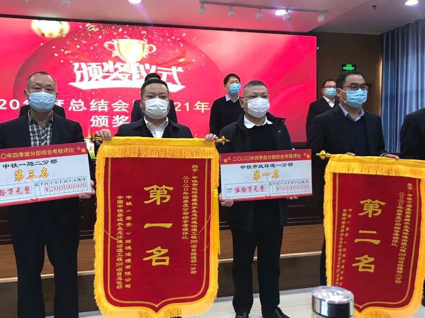 1月23日,在中鐵泰安(環(huán)境治理)有限公司2020年度總結會暨2021年工作會上,泰城水生態(tài)環(huán)境治理工程PPP項目部憑借在施工管理、安全生產、工程技術等方面的優(yōu)異表現,榮獲四季度勞動競賽綜合考核評比總體第一、分部第一,年度勞動競賽綜合考核評比分部第三的佳績。